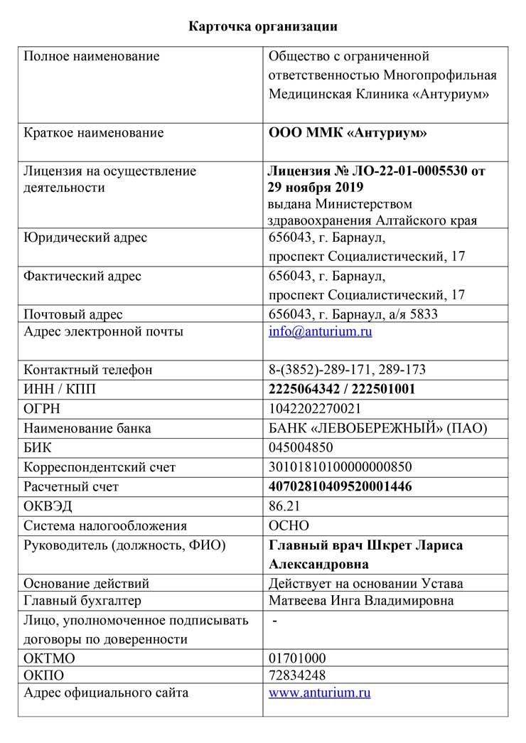 - Договор на оказание медицинских услуг ООО ММК «Антуриум» на платной основе. Образец